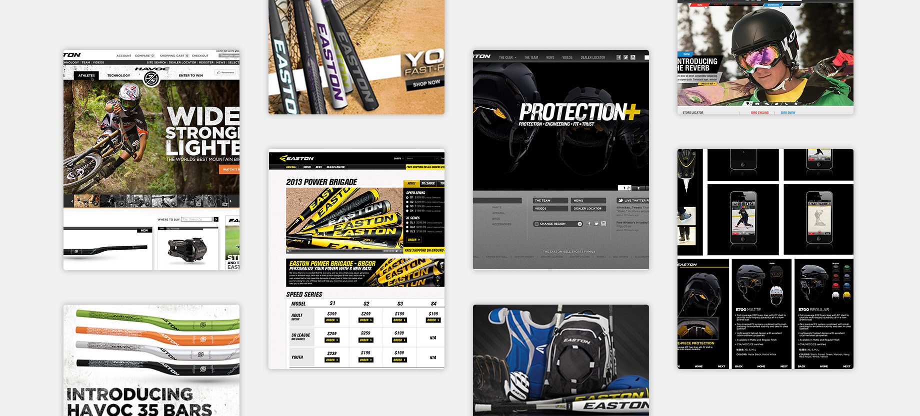 I assisted in creating digital assets for the global marketing team as well as general website enhancements for the multiple EBS sport brands. The Easton brand umbrella consisted of ( Baseball, Softball, Hockey, Lacrosse, Cycling, Giro, Ridell, Bell Helmets and Blackbrun. All brands had a unique style guide to follow. My main tasks were creating style guidelines, ecommerce promo assets such as eblasts, landing pages and web banners.