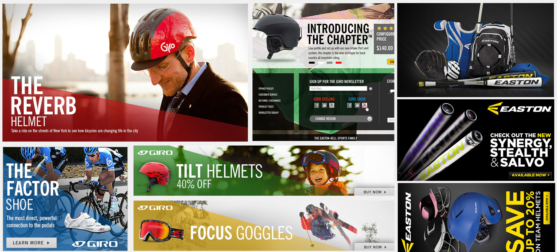 Spearheaded the production of all digital marketing assets and social media assets for the multiple sport brands under the umbrella of Easton Bell Sports. Projects included high-quality digital campaigns: web banners, landing pages, email blasts and social media assets for all brands.