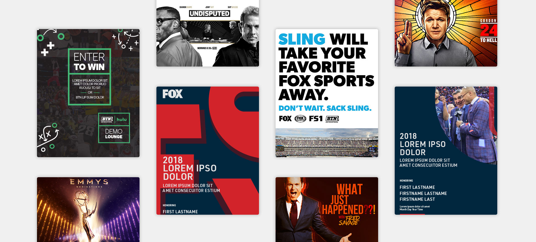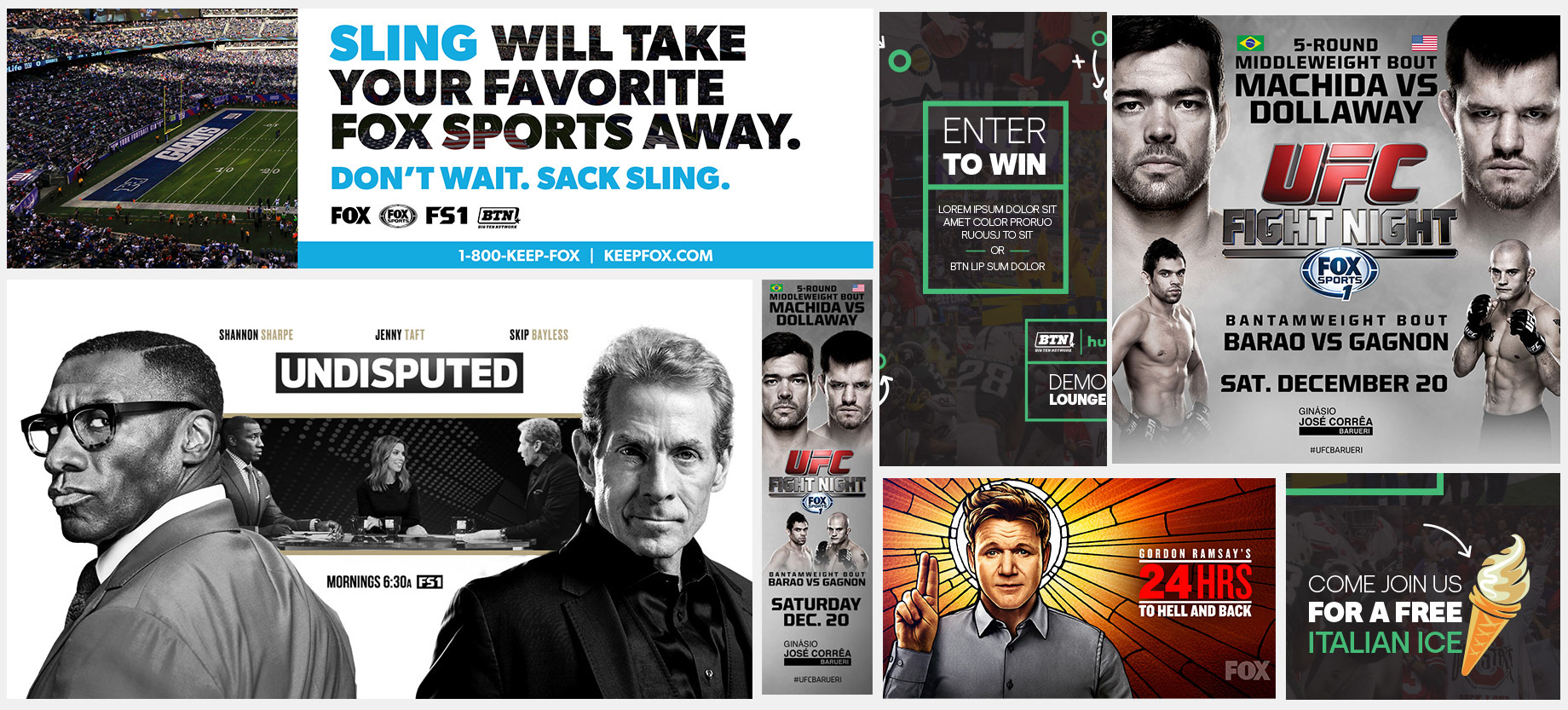 While at FOX Broadcasting I was responsible for the creation of eblasts, web banners, B2B digital assets, Event print collateral and digital billboard signage.